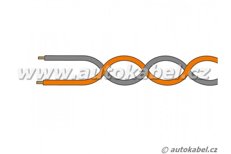 Kroucená dvojlinka z autovodičů FLRY, 2x 0,35mm², barvy oranžová + šedá. Pokud vodič není skladem, obvykle ho do týdne vyrobíme. Uvedená cena je za 1 metr, prodej pouze po celých cívkách x 100m.