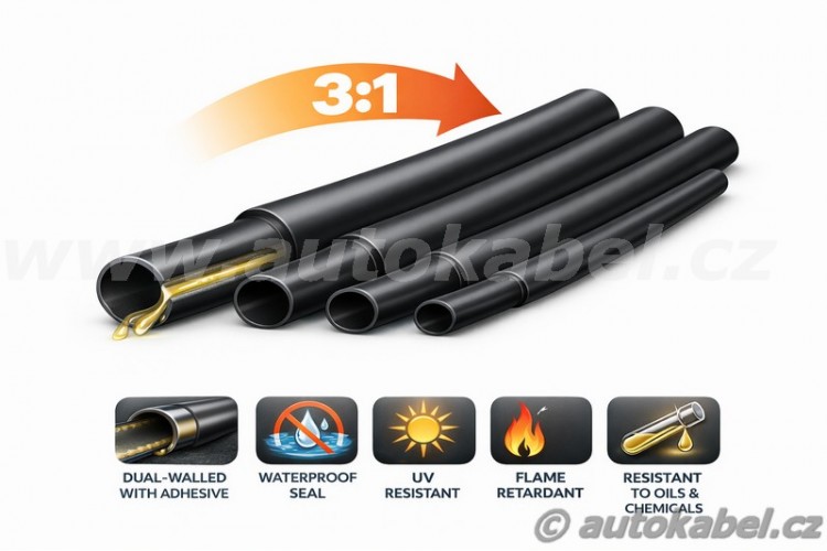 Tepelně smrštitelná bužírka 3:1 – černá, bez ..