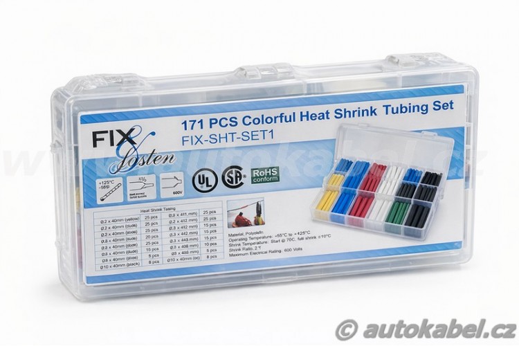 Sada smršťovacích bužírek 171ks. Šikovná sada různobarevných bužírek v nejpoužívanějších velikostech. Dodáváno v praktické krabičce.