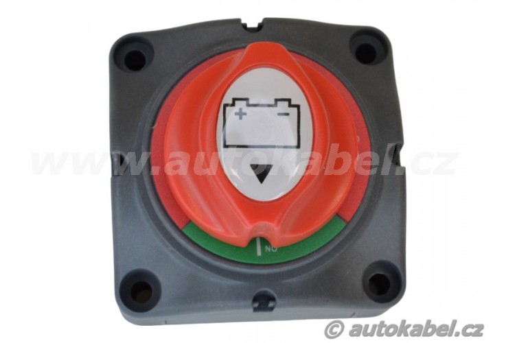 Otočný silový spínač používaný především k odpojení silového DC napájecího okruhu, především baterie. Použití jen v nízkonapěťových DC instalacích.